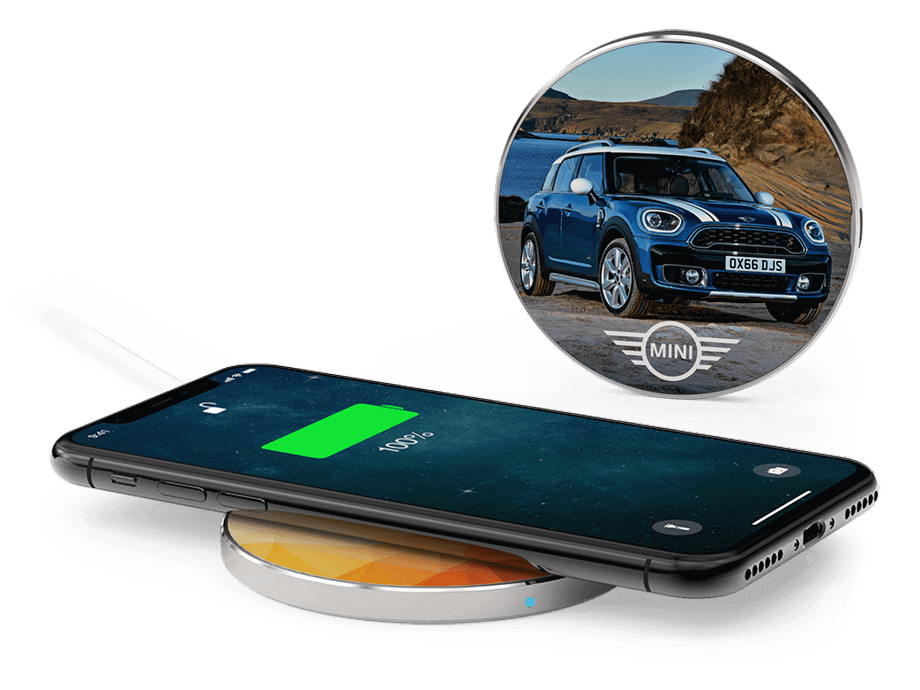 O carregador sem fios Cirque é o produto promocional perfeito para feiras, eventos e muito mais, para aumentar a visibilidade e o reconhecimento da marca.