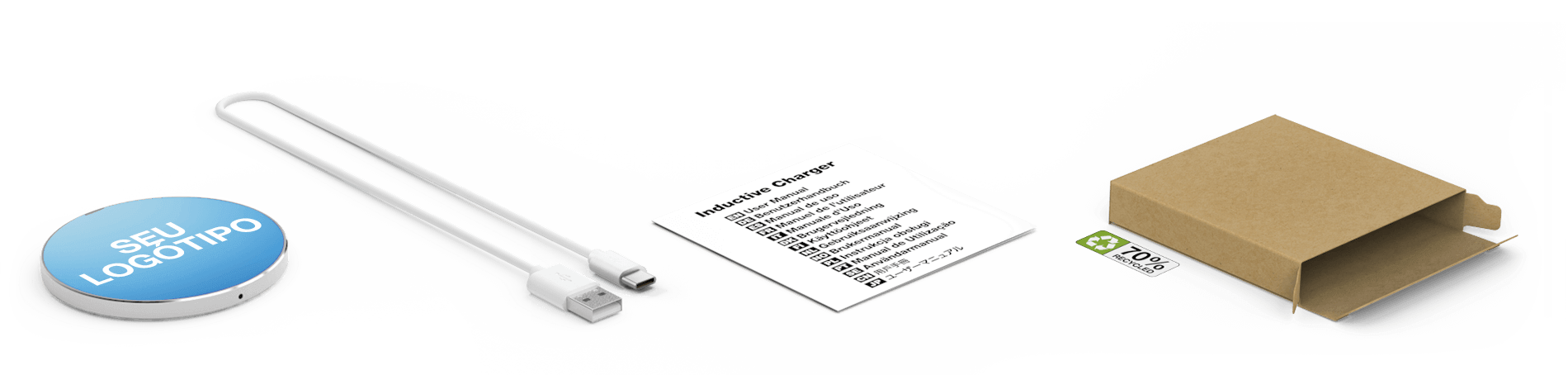 RoHS Este produto está em conformidade com a Directiva RoHS (Restrição da UE a substâncias perigosas)Pads de carregamento sem fios totalmente personalizáveis