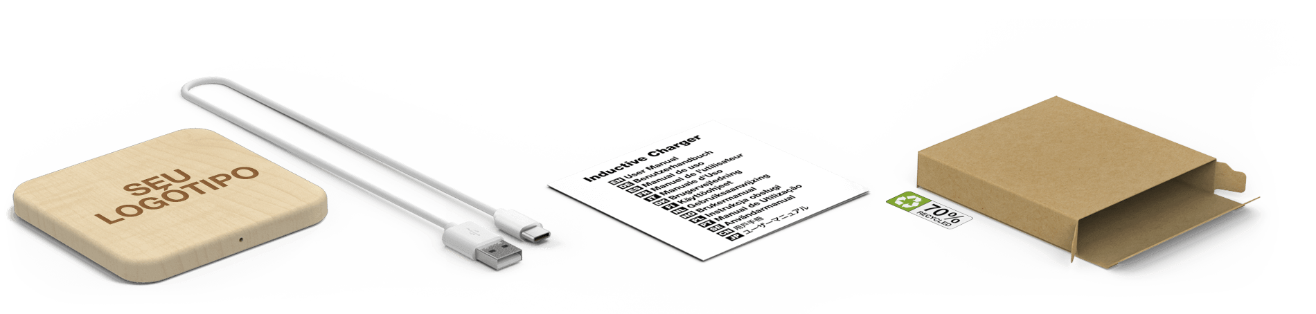 O nosso carregador de telefone sem fios Forest é um excelente presente corporativo, prémio de feira ou ferramenta de marketing interno, particularmente para refletir os valores de sustentabilidade da sua marca’. Com o nosso serviço profissional de serigrafia, podemos reproduzir o seu logotipo ou slogan em cores vibrantes e de alta qualidade em até 4 cores, garantindo que o seu design se destaque lindamente na superfície da madeira de bordo.
