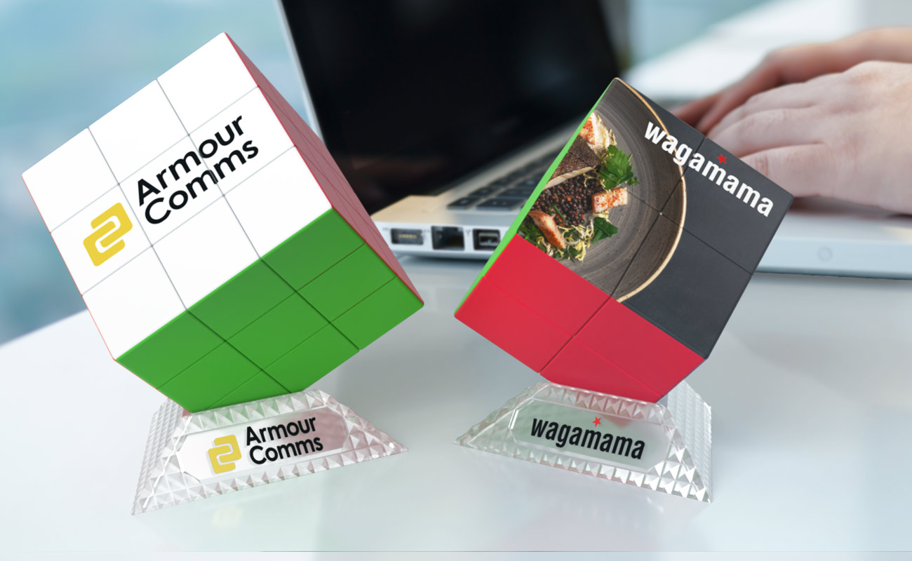 Podemos personalizar este mini cubo puzzle em um ou seis lados com o nosso serviço profissional de Impressão Fotográfica a cores, usando as imagens da sua marca, logótipo ou qualquer outro design para campanhas de marketing específicas.
