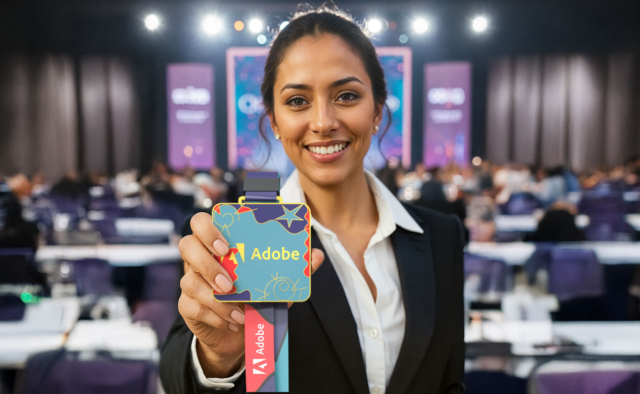 • Adicione o seu logótipo e mensagem à fita para o pescoço