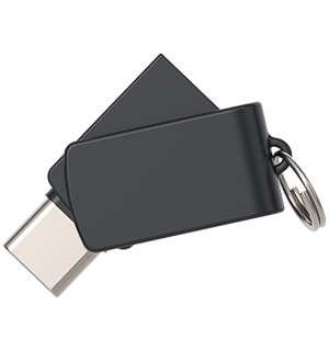 Our Nano USB is a compact, dual-connector Flash Drive designed for modern convenience. With both a Standard USB and USB-C connector built into one sleek device, it’s the perfect solution for seamless file transfer across laptops, desktops, tablets, and smartphones. Simply swivel the Flash Drive and choose which connector you want to use. The Nano also features a handy keyring loop, perfect for attaching to a set of keys or lanyard.