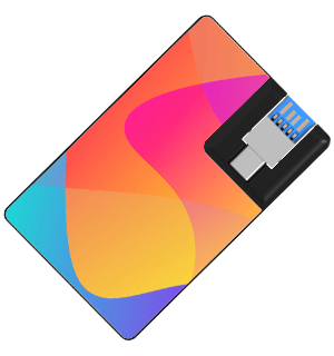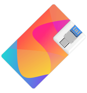 O Wafer Duo oferece um conetor USB padrão e um conetor USB-C numa placa USB super fina. A superfície principal do cartão tem apenas 2,25 mm de espessura e pode ser impressa com a sua imagem, logótipo e muito mais, com detalhes vibrantes. O conetor USB funcional pode rodar, dando-lhe a escolha de conectores num instante. O Wafer Duo é o irmão do nosso .